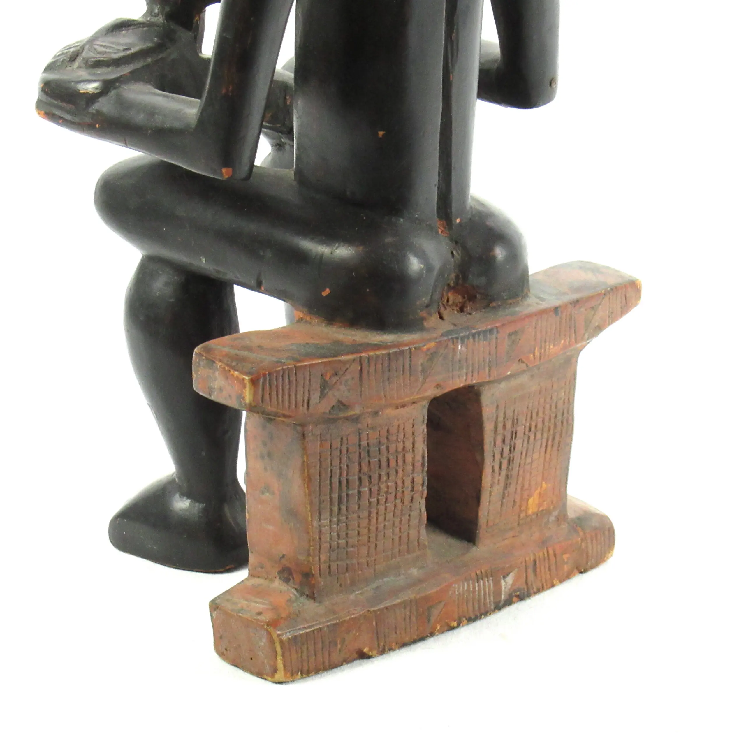 Impressive Akan Ashanti fertility statue from Ghana: a seated mother on a stool with her child on her lap. An expressive and spiritually strong object that immediately attracts attention.