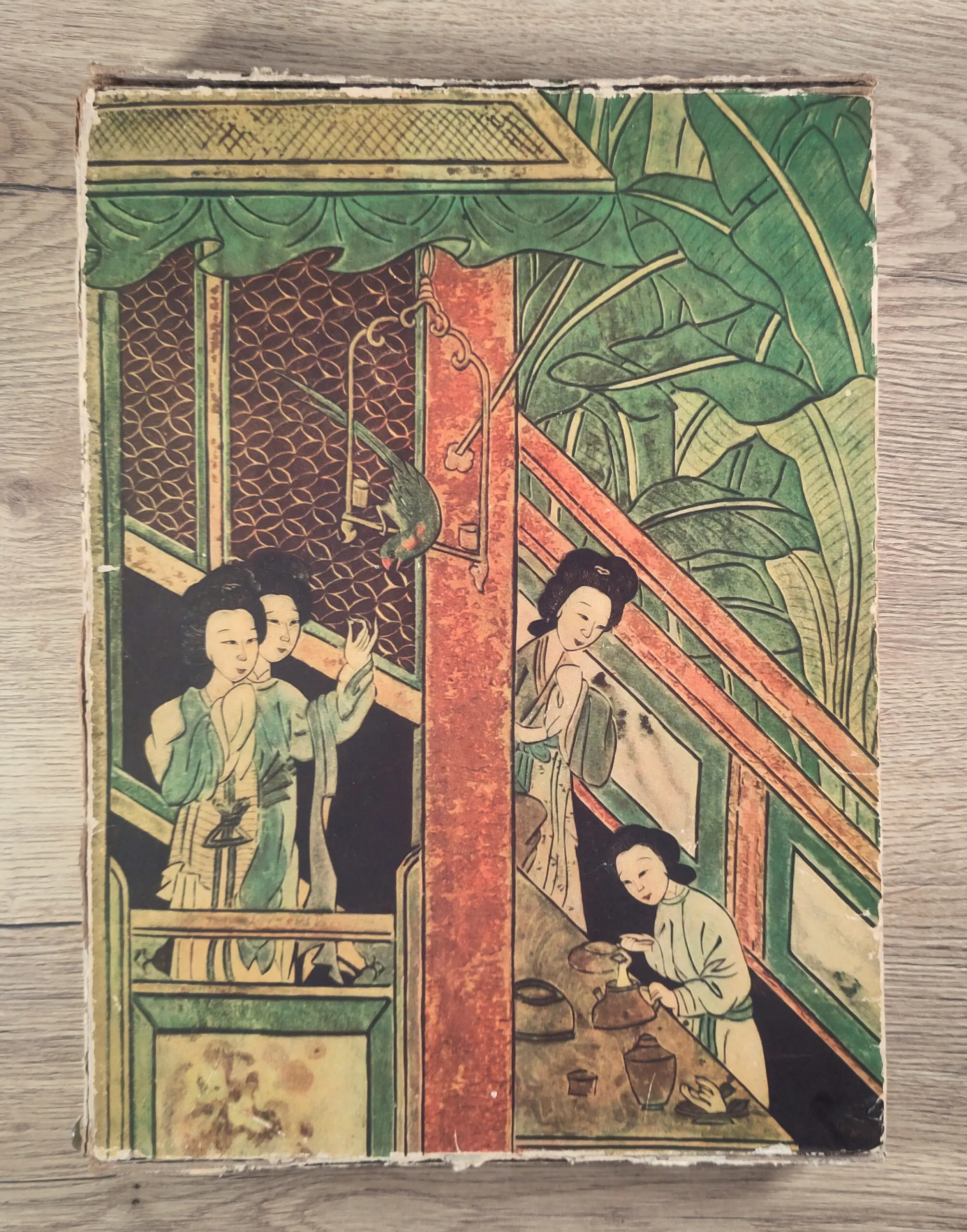 Large-format hardcover, complete with original decorative slipcase with dragon motif. The book itself is in good used condition with slight signs of age appropriate to its age. The slipcase shows visible edge and corner wear, but remains structurally intact and makes a nice presentation to keep the book in. The photographic plates retain their sharpness and rich tone.