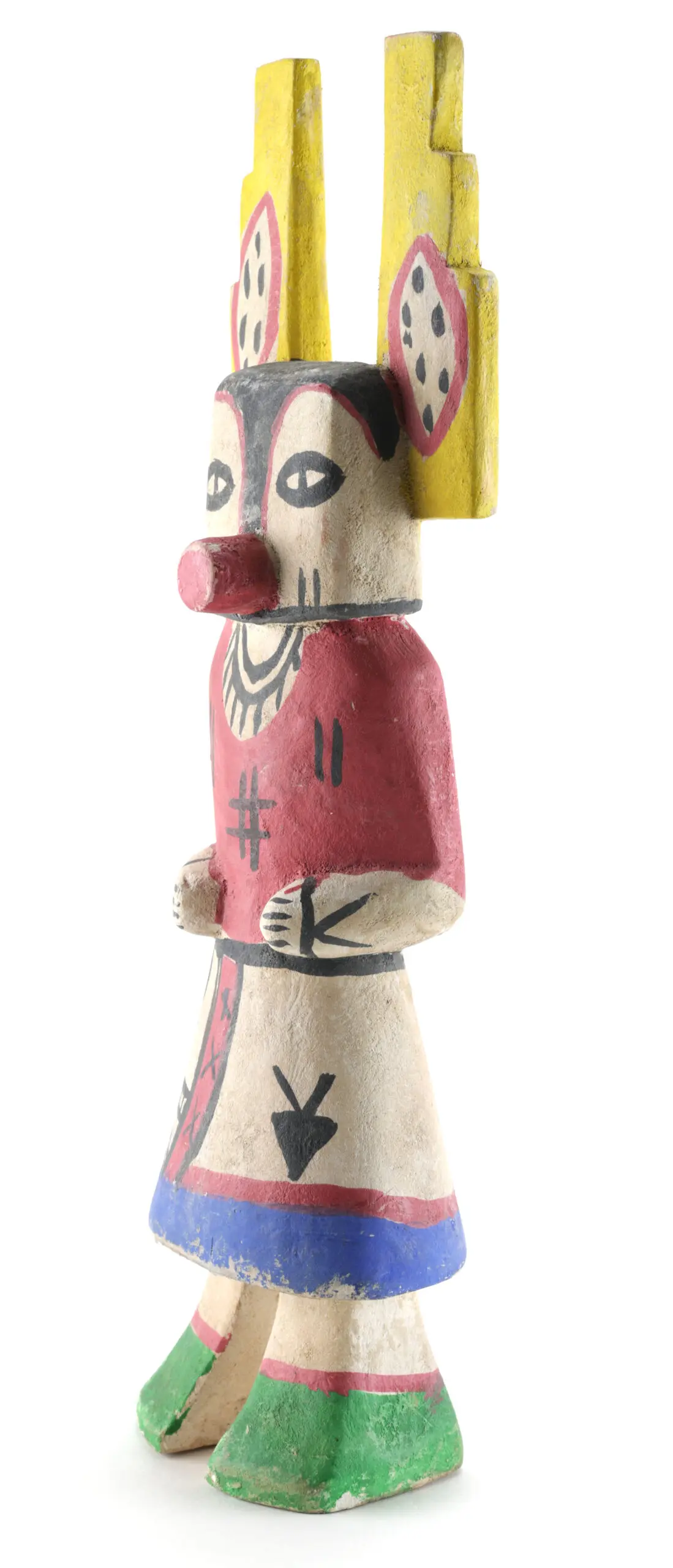 Origin & meaning: This Hemis kachina is one of the main Hopi figures, often associated with the Niman (Home Dance) ceremony. The striking yellow headdress emphasises the festive and symbolic role of this figure. The piece is part of the collection of Amsterdam architect Ben Spangberg (1929-2024), who carefully built up his collection between 1960 and 1980.