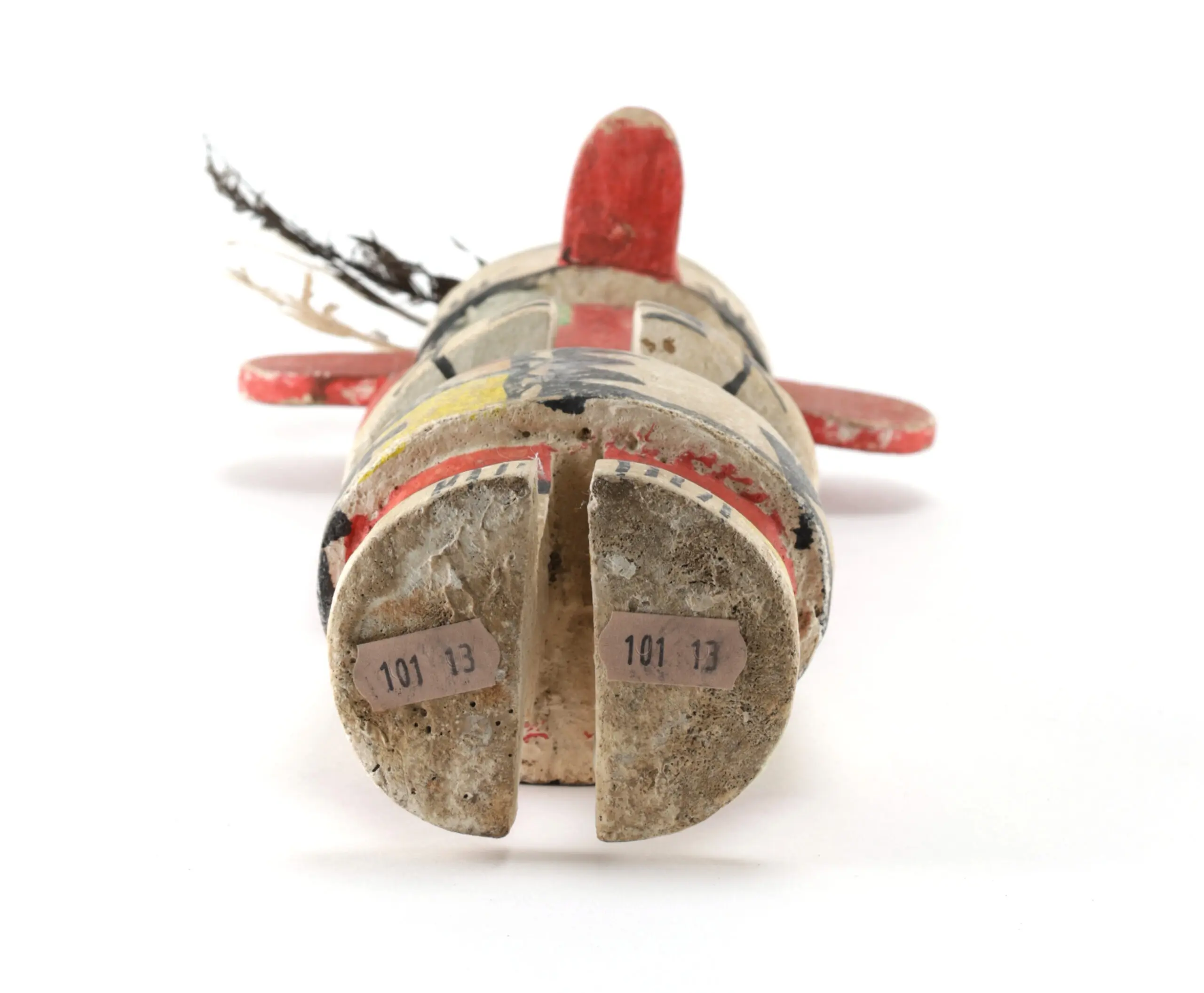 The Hemis kachina is among the most important figures in the Niman (Home Going) ceremony. Variants like this one, with cylindrical helmet and handprints, represent a specific ceremonial appearance. The handprints symbolise spiritual protection.