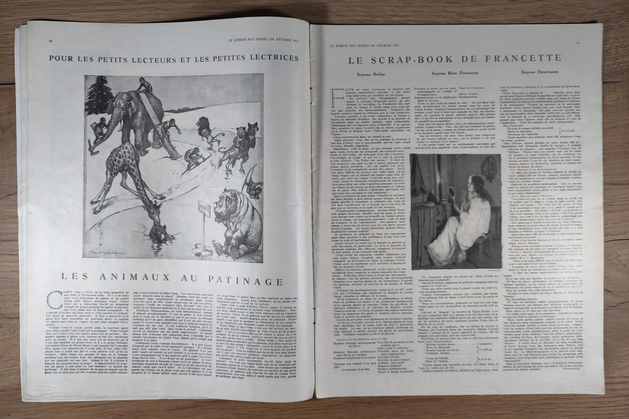 Unique vintage copy of the French fashion magazine Le Miroir des Modes, published in February 1923 - numéro 2 (Volume LXXXVI). This edition of The Butterick Publishing Company is a cheerful and colourful ode to carnival, perfectly suited to the month of February.