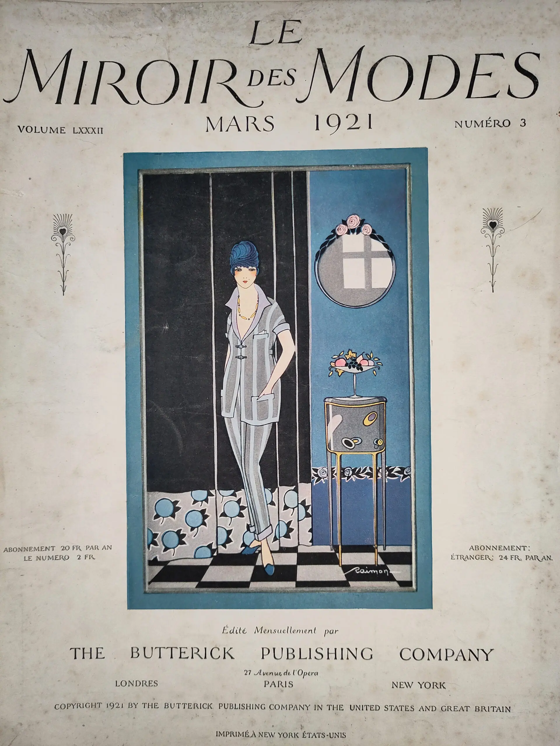 Rare original copy of the French fashion magazine Le Miroir des Modes, edition March 1921 - numéro 3 (Volume LXXXII). This stylish magazine was published monthly by The Butterick Publishing Company in Paris, London and New York and was a leader in international womenswear.