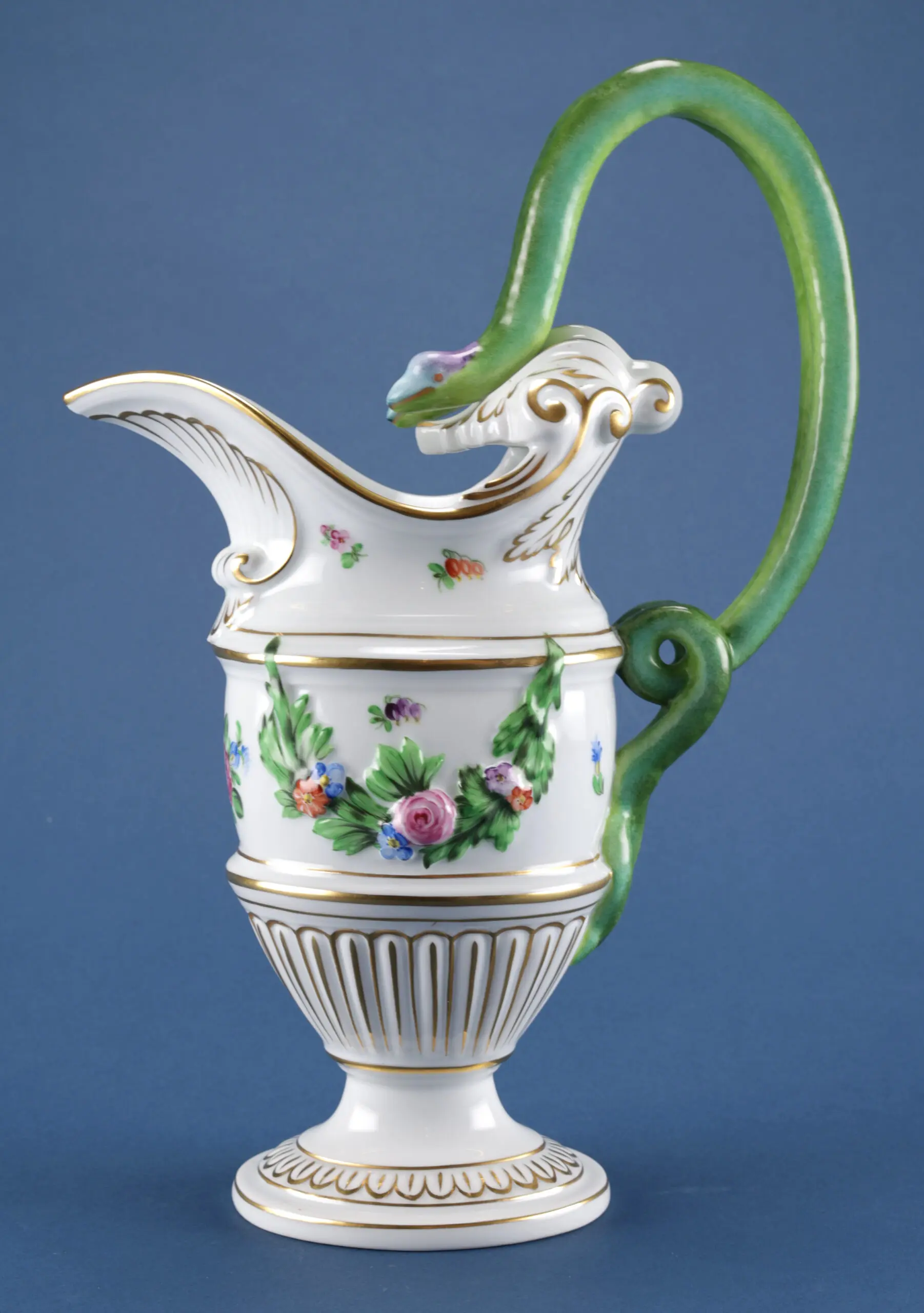 Het wereldberoemde Herend-porselein wordt sinds de 19e eeuw in Hongarije vervaardigd en staat bekend om zijn luxe en artistieke ontwerpen. Model 6625C, met het slangenhandvat, is bijzonder gewild onder kenners. Dit type object werd vaak als pronkstuk gebruikt in Europese salons en is een toonbeeld van de artistieke ambitie van Herend.