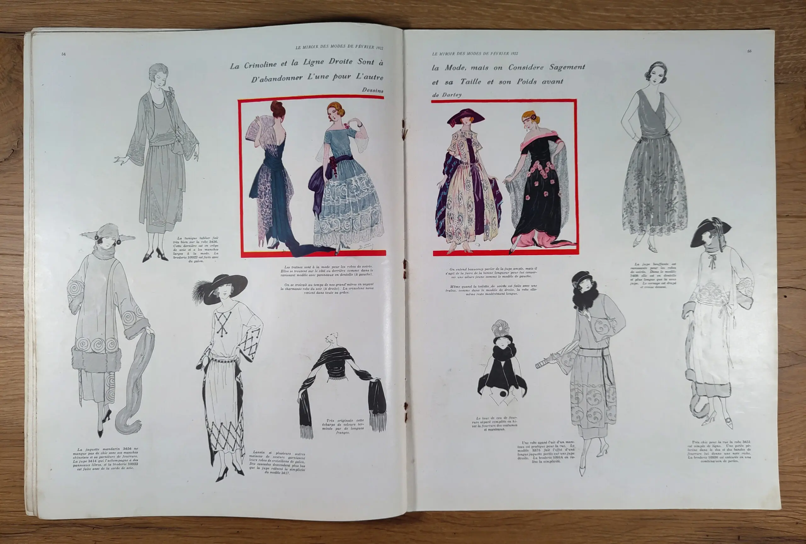Origineel exemplaar van het elegante Franse modeblad Le Miroir des Modes, verschenen in februari 1922 – numéro 2 (Volume LXXXIV). Deze uitgave werd gepubliceerd door The Butterick Publishing Company in Parijs, Londen en New York, en was toonaangevend in de wereld van damesmode tijdens het interbellum.