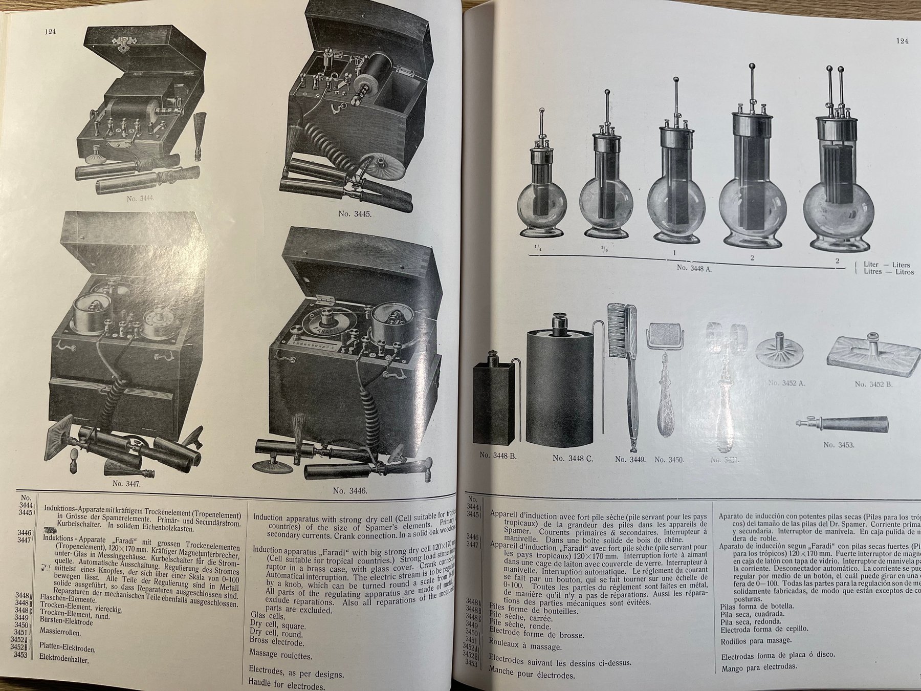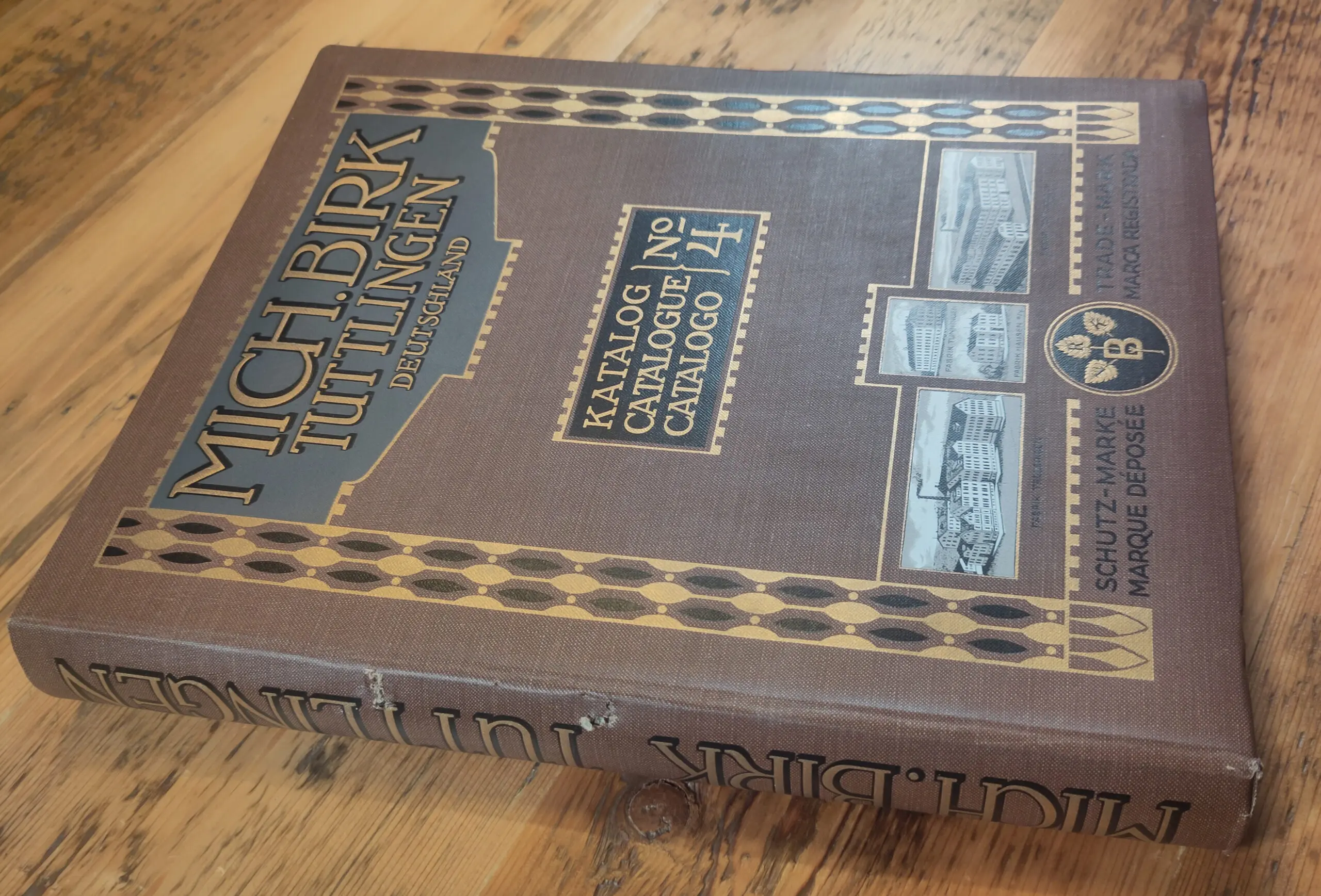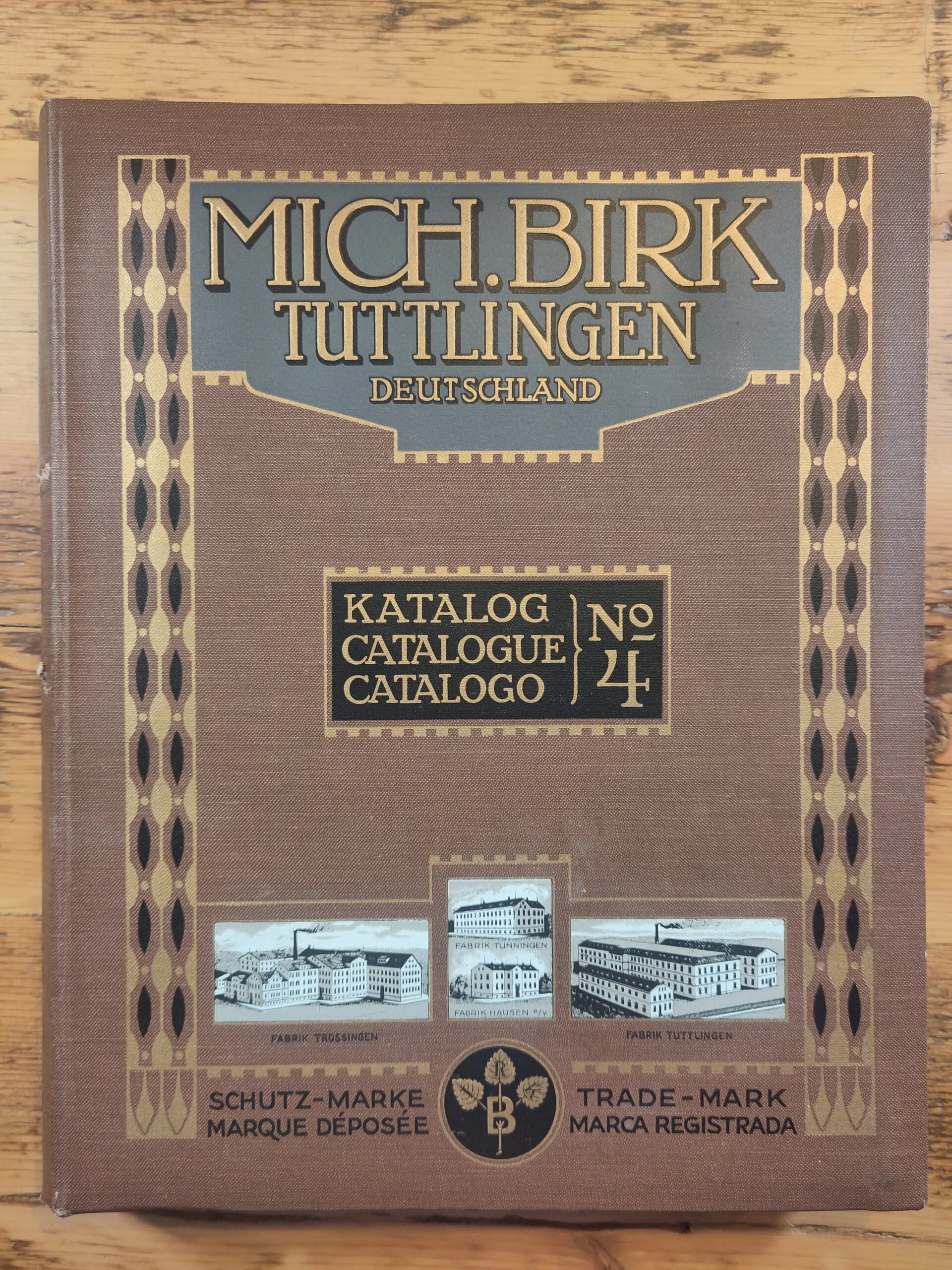 Zeer zeldzame medische instrumentencatalogus van Mich. Birk uit Tuttlingen, Duitsland. Deze prachtig vormgegeven uitgave (Nr. 14) is een waardevolle bron voor verzamelaars van historische medische apparatuur, ontwerpers en museologen. De catalogus is rijk geïllustreerd met zwart-witfoto’s van chirurgische instrumenten, apotheeketiketten, en heeft een schitterend art-deco omslag. Met duidelijke beschrijvingen in meerdere talen (Duits, Frans, Engels, Spaans) vormt dit boek een bijzonder verzamelobject én naslagwerk. Een onmisbare aanvulling voor elke serieuze verzamelaar of antiekhandelaar op het gebied van medische geschiedenis.