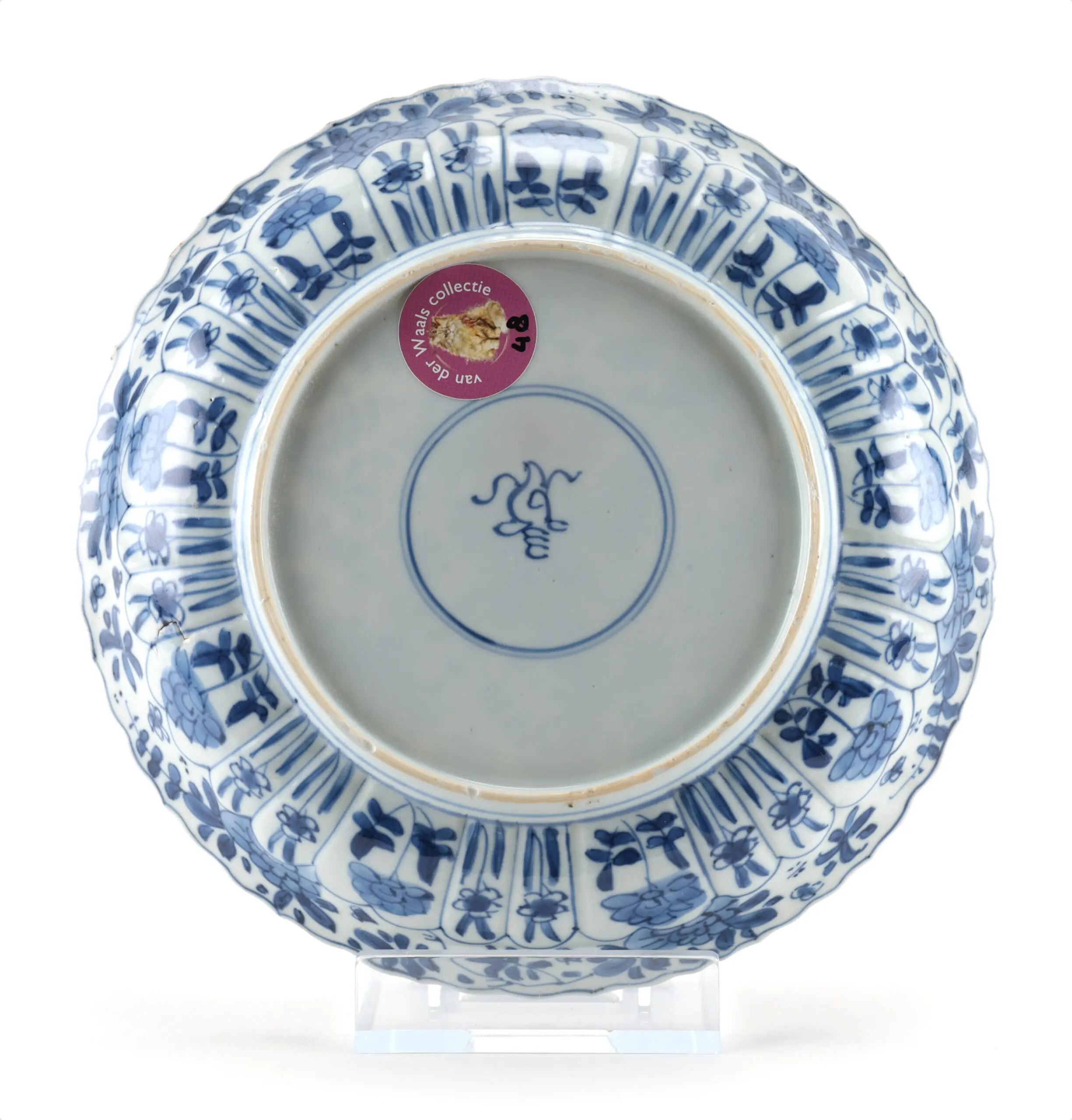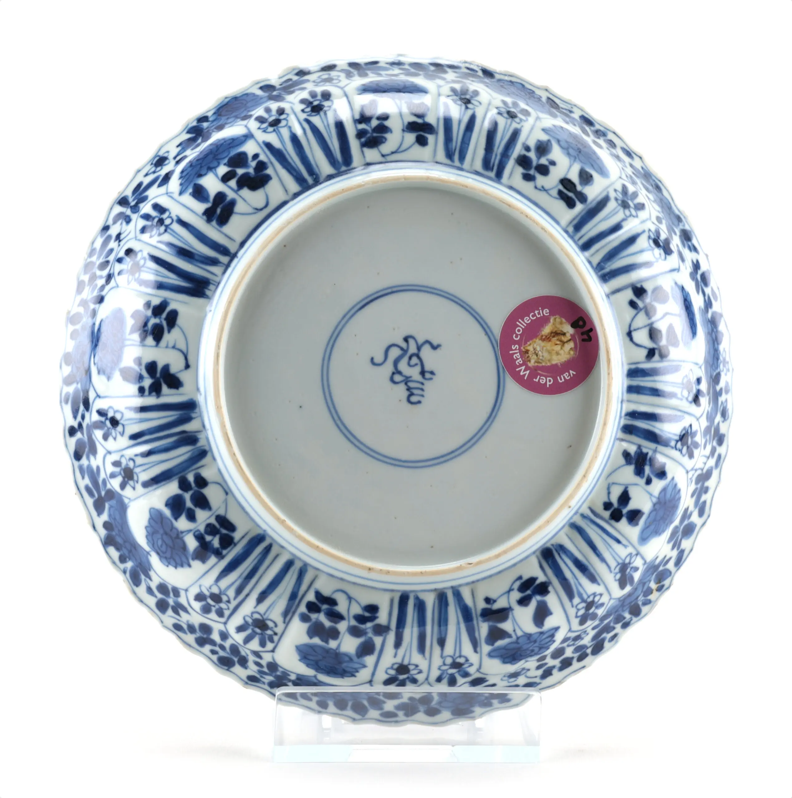 Het artemisia blad merkteken is een veelgebruikt merkteken in de Kangxi periode. Hoewel het niet verwijst naar een specifieke keizerlijke opdracht, werd het vaak toegepast als kwaliteitskenmerk op hoogwaardig exportporselein. Het artemisia blad verwijst naar de geurige bijvoetplant (Artemisia argyi), in de Chinese cultuur geassocieerd met bescherming en zuivering. Het floraal decor op deze borden symboliseert voorspoed en harmonie; bloemen als pioen, chrysant en prunus staan respectievelijk voor rijkdom, een lang leven en veerkracht. Samen vormen deze symbolen een visueel wensgedicht voor welzijn en geluk.