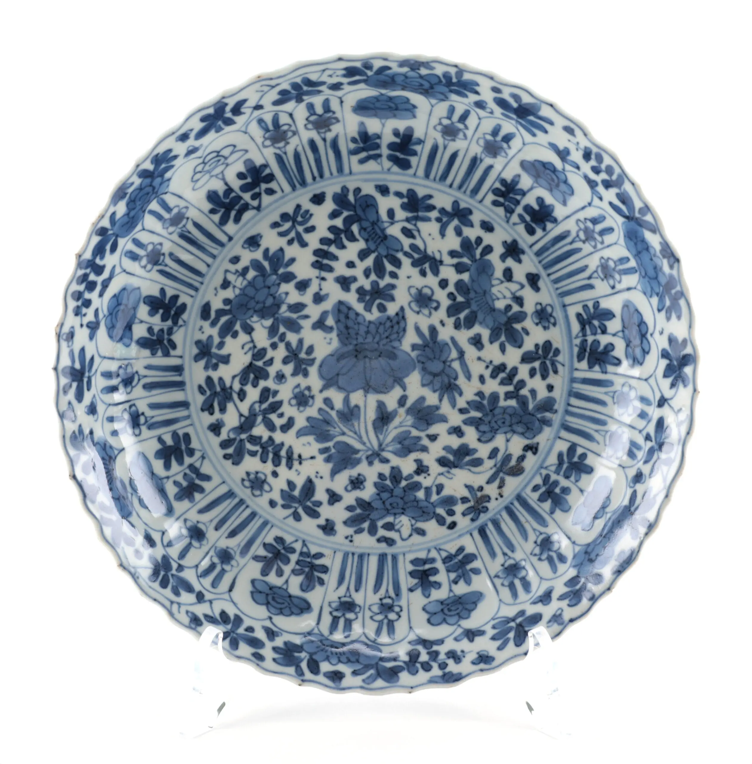 De borden stammen uit de hoge Qing dynastie onder keizer Kangxi (1662–1722), een periode die wordt beschouwd als een hoogtepunt in de Chinese porseleinproductie. Het floraal decor weerspiegelt verfijning, symboliek en het vakmanschap van de ovens van Jingdezhen.