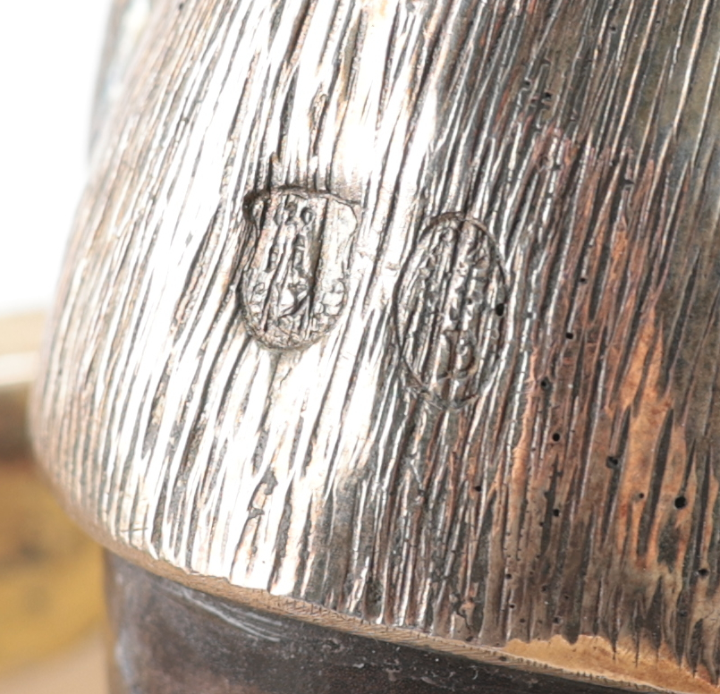 De pseudo-gildekeuren en het duidelijke Dingeldein-meesterteken (ovaal met radmotief en D) tonen typisch Hanauer werk rond 1880–1910. Hanau stond bekend om zijn hoogwaardige neorenaissance- en barokke fantasiezilver, vaak bedoeld voor kabinetten, rariteitenkamers en internationale verzamelaars. Dit paar, uitgevoerd als elegante watervogels met nautilusschelp, past volledig binnen die luxueuze Wunderkammer-traditie.